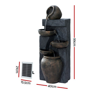 Gardeon Solar Water Feature Cascading Fountain 3-Tier Pot LED Lights 76CM Grey